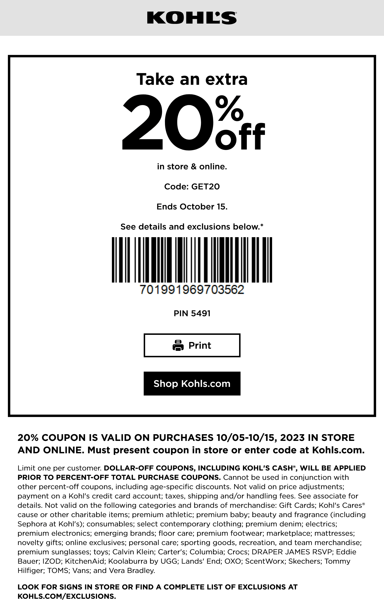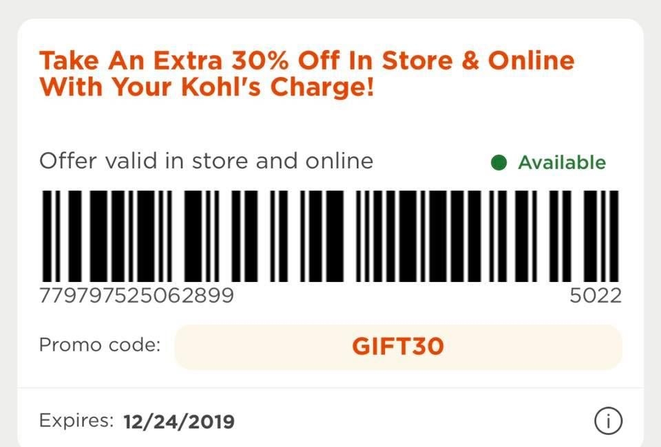 Kohls 30 Off Coupon Code In Store